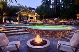 - Stone: Hardscapes...patios, paths, and boulder walls.